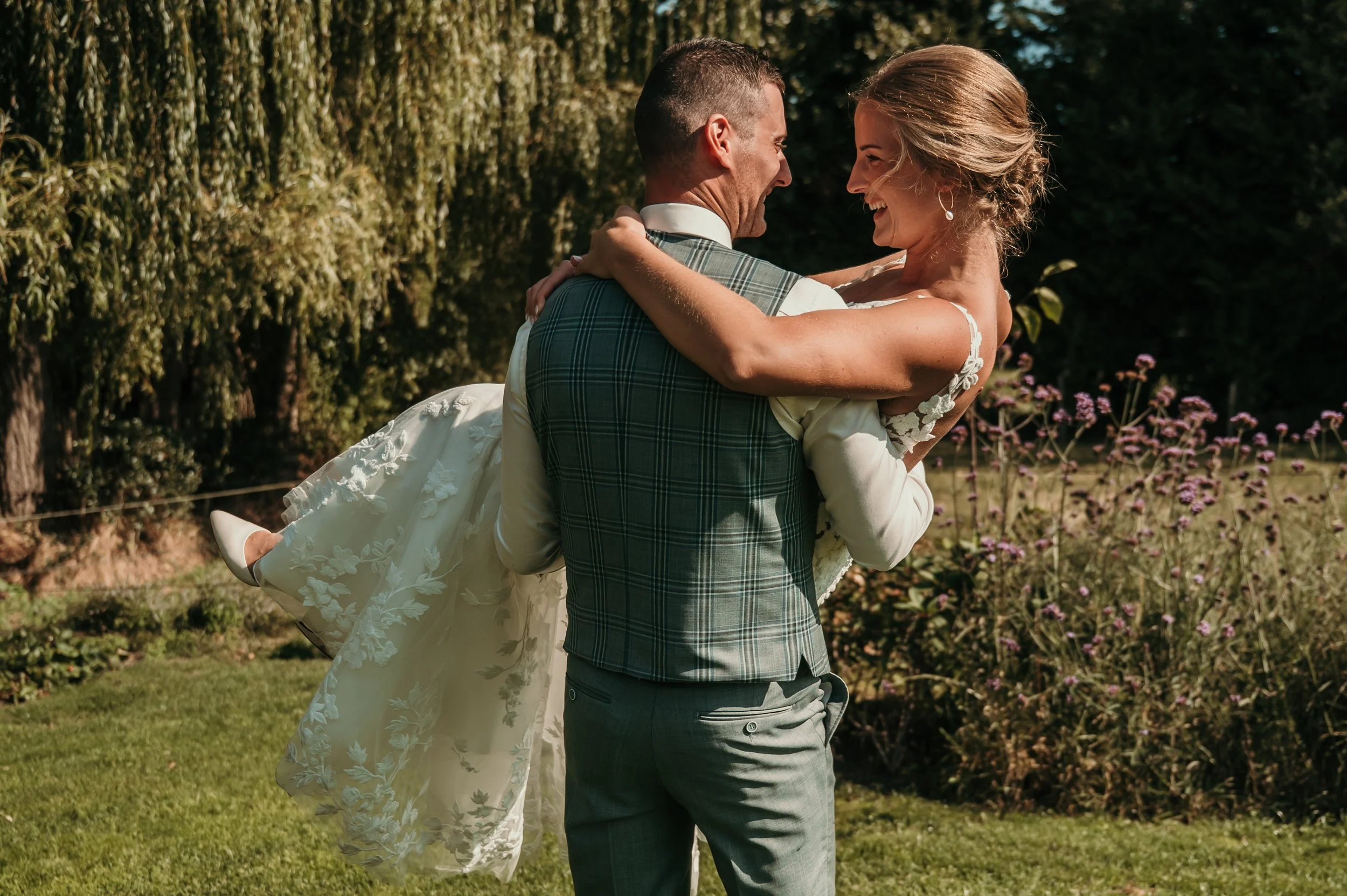 Het natuurlijke licht, gecombineerd met de groene omgeving, zorgt ervoor dat jullie als bruidspaar van het scherm af spatten. Jullie hoeven hier niets te forceren. Gewoon samen zijn is genoeg.